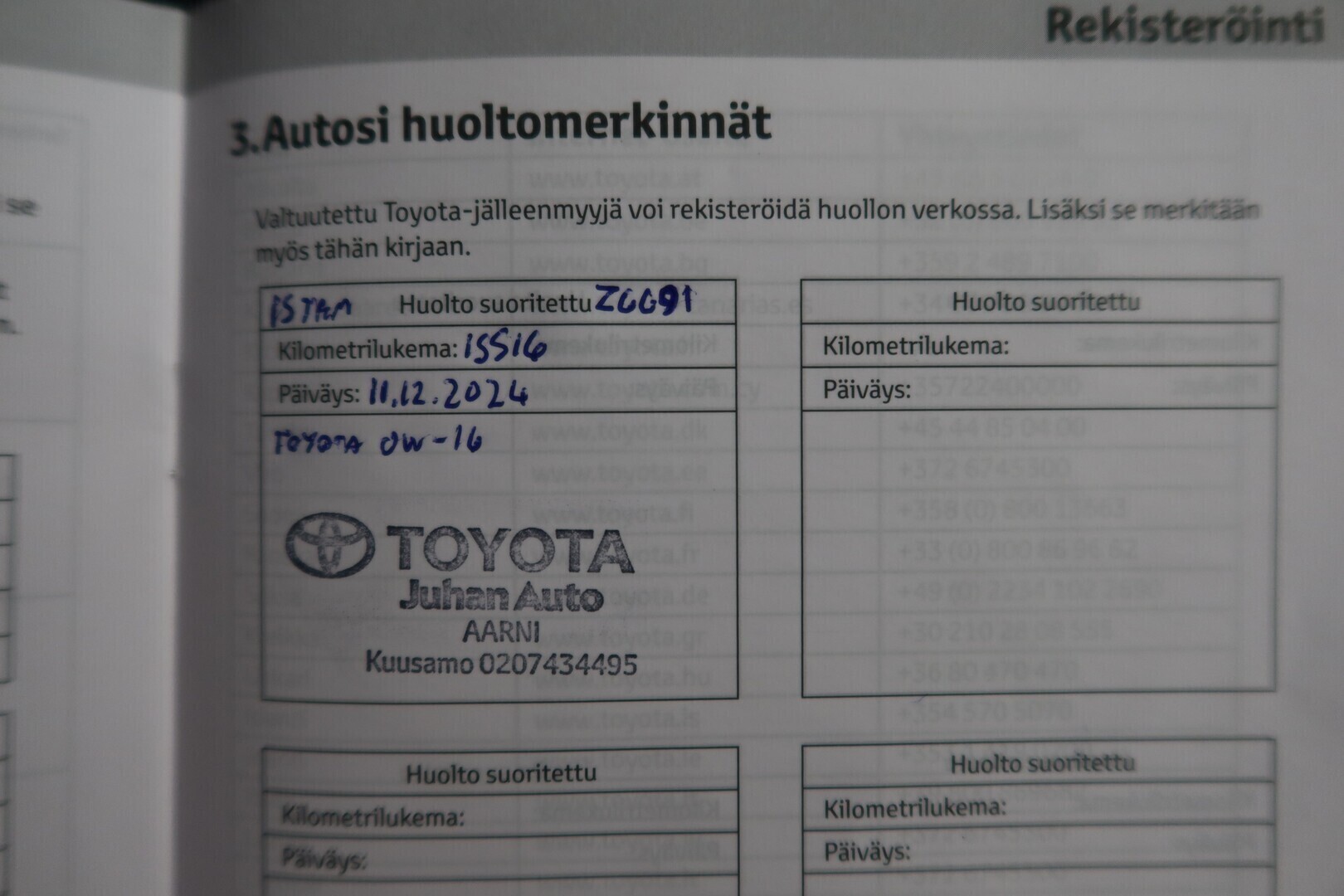 Täydellinen merkkiliikkeen huoltokirja, viimeisin huolto tehty 12/2024/15516km kohdalla.