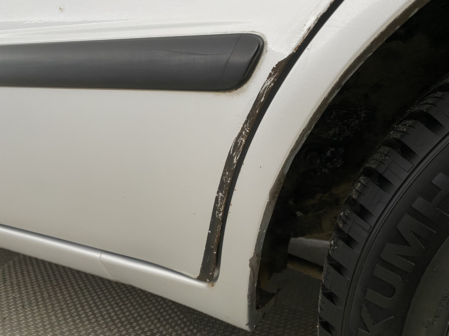Isoimmat puutteet: takavaloumpiossa halkeamia ja pieni reikä sekä takaluukun koristelista on halki. Auto on 27 vuotta vanha ja siinä on pieniä lommoja ja naarmuja