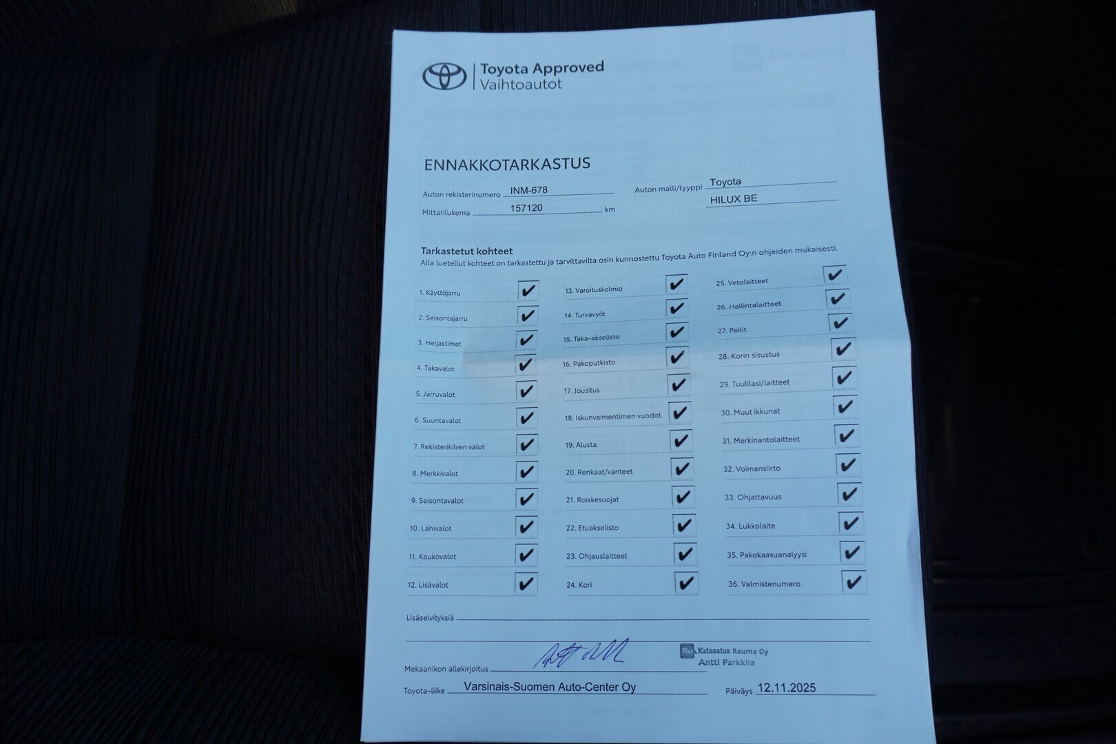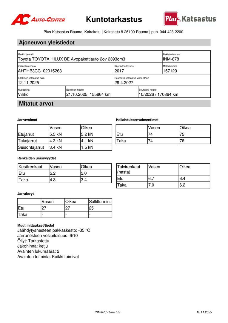 Täydellinen huoltokirja, viimeisin huolto 155tkm 10/2025