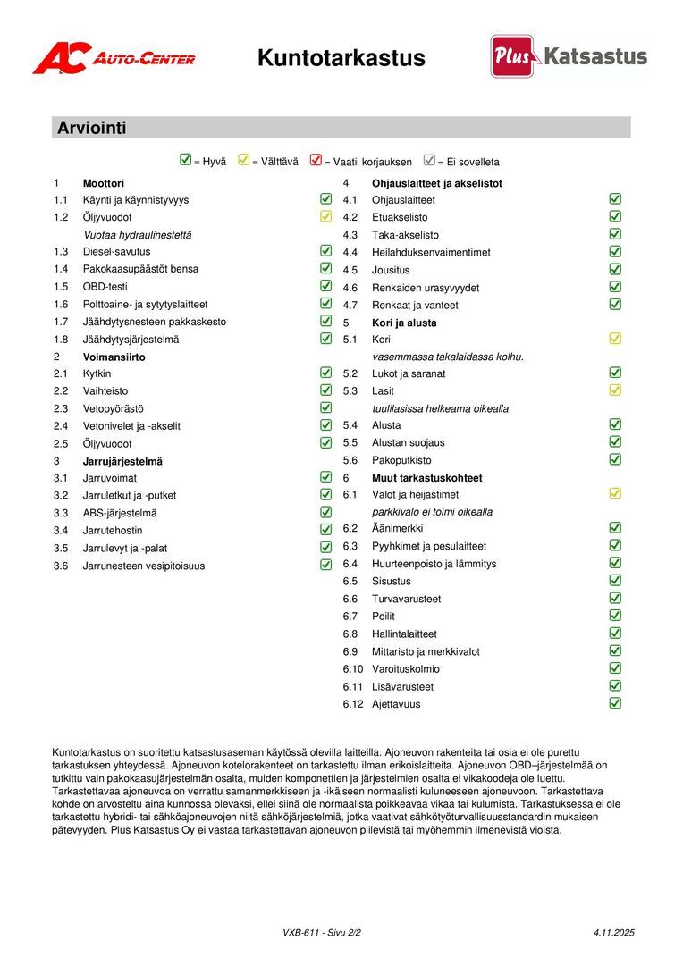 Huoltokirja, viimeisin huolto tehty 11./-25 n. 147tkm. ajettuna!