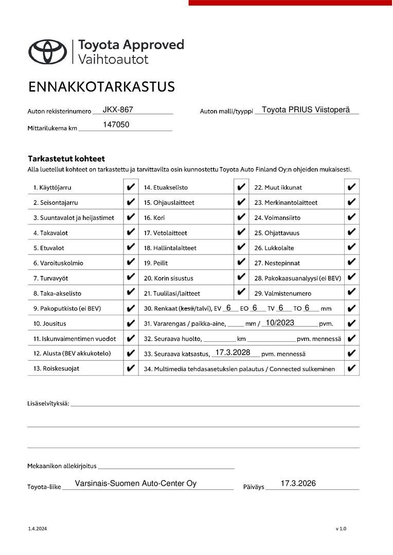 Täydellinen merkkiliikkeen huoltokirja, viimeisin huolto tehty 11./-25 n. 145tkm. ajettuna!