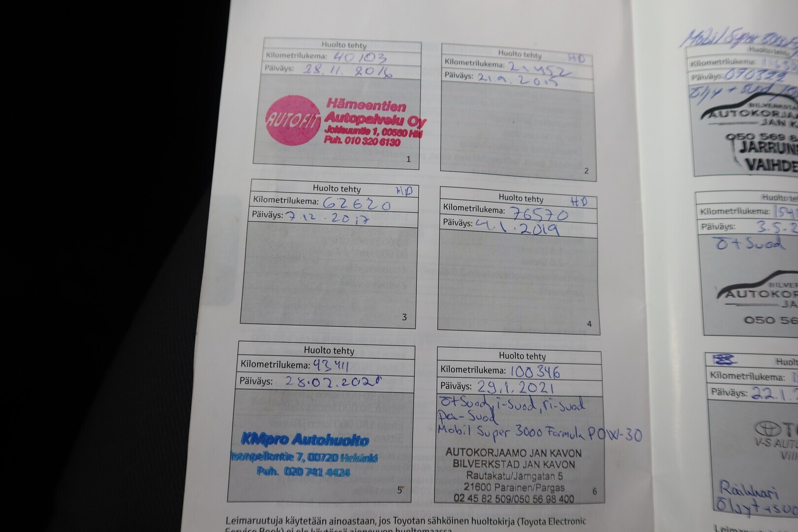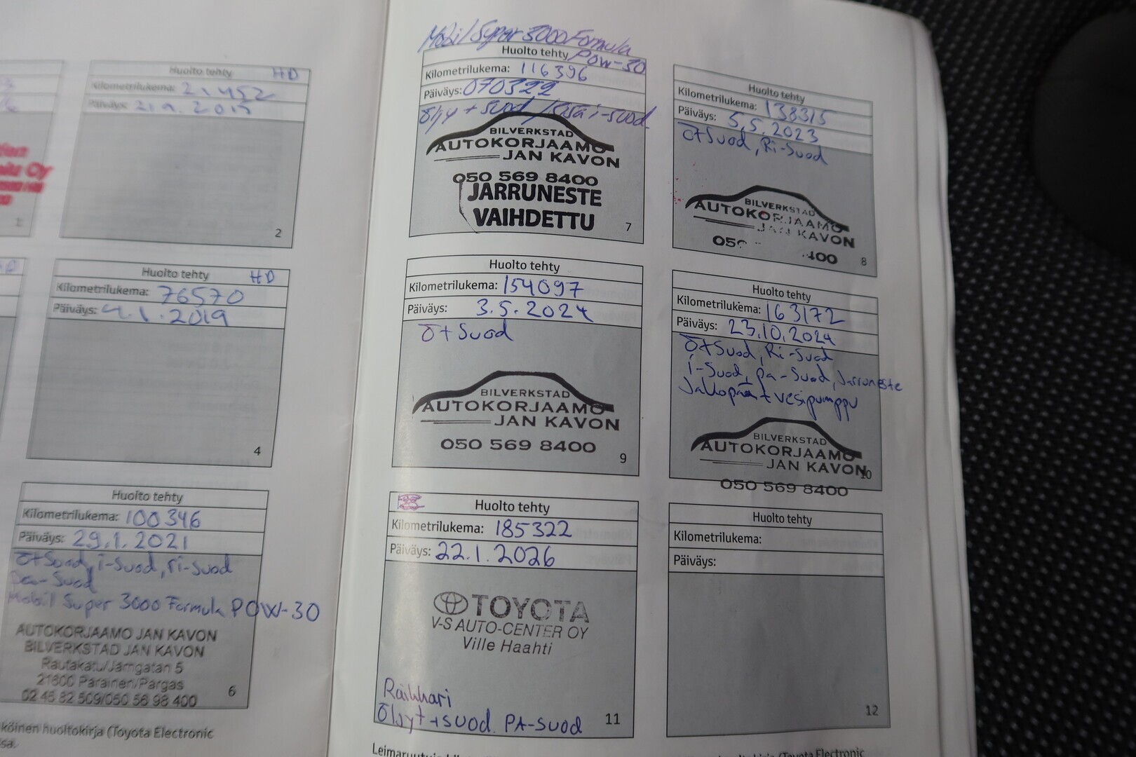 Huoltokirja, viimeisin huolto tehty 185tkm 1/2026