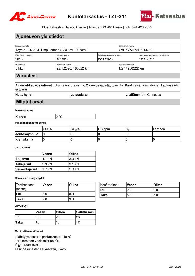 Kuntotarkastettu ja Katsastettu! Raportin puutteet/viat korjattu!