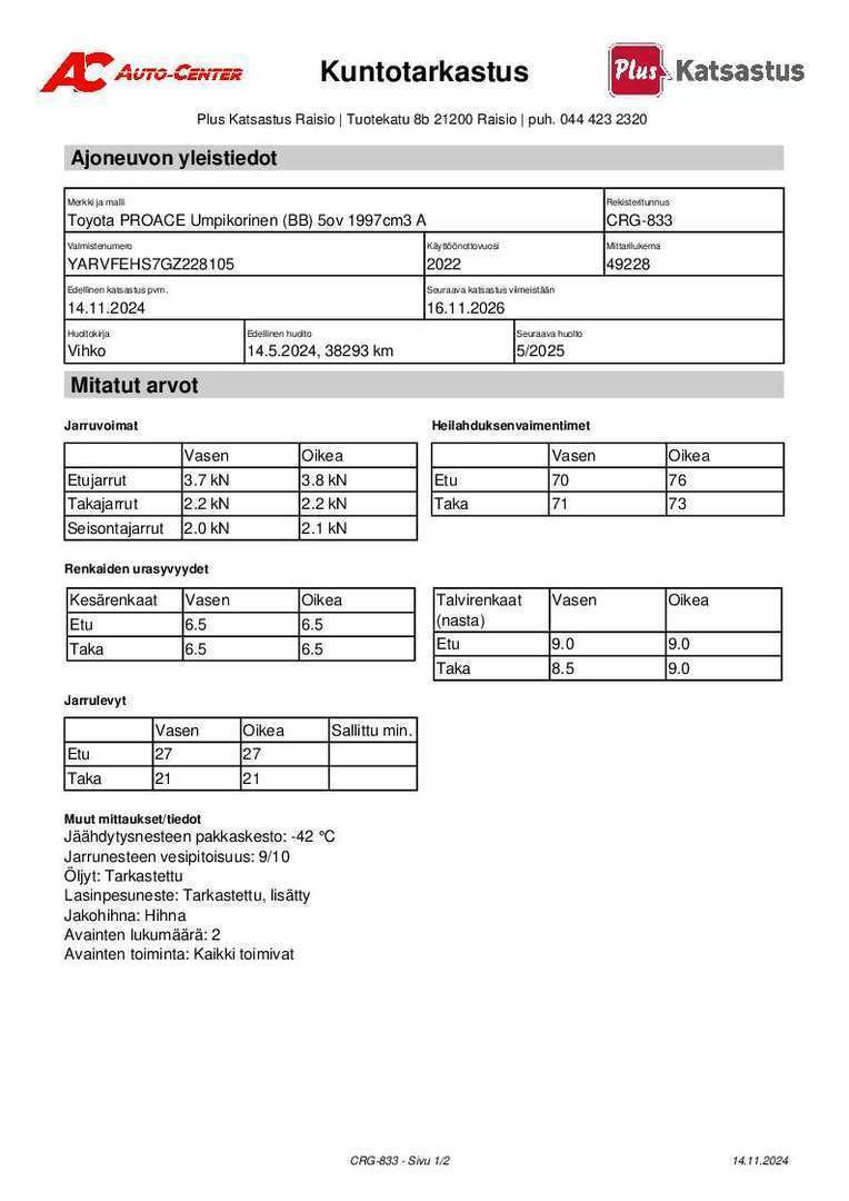 Täydellinen merkkiliikkeen huoltokirja, viimeisin huolto tehty 5/2024 38tkm