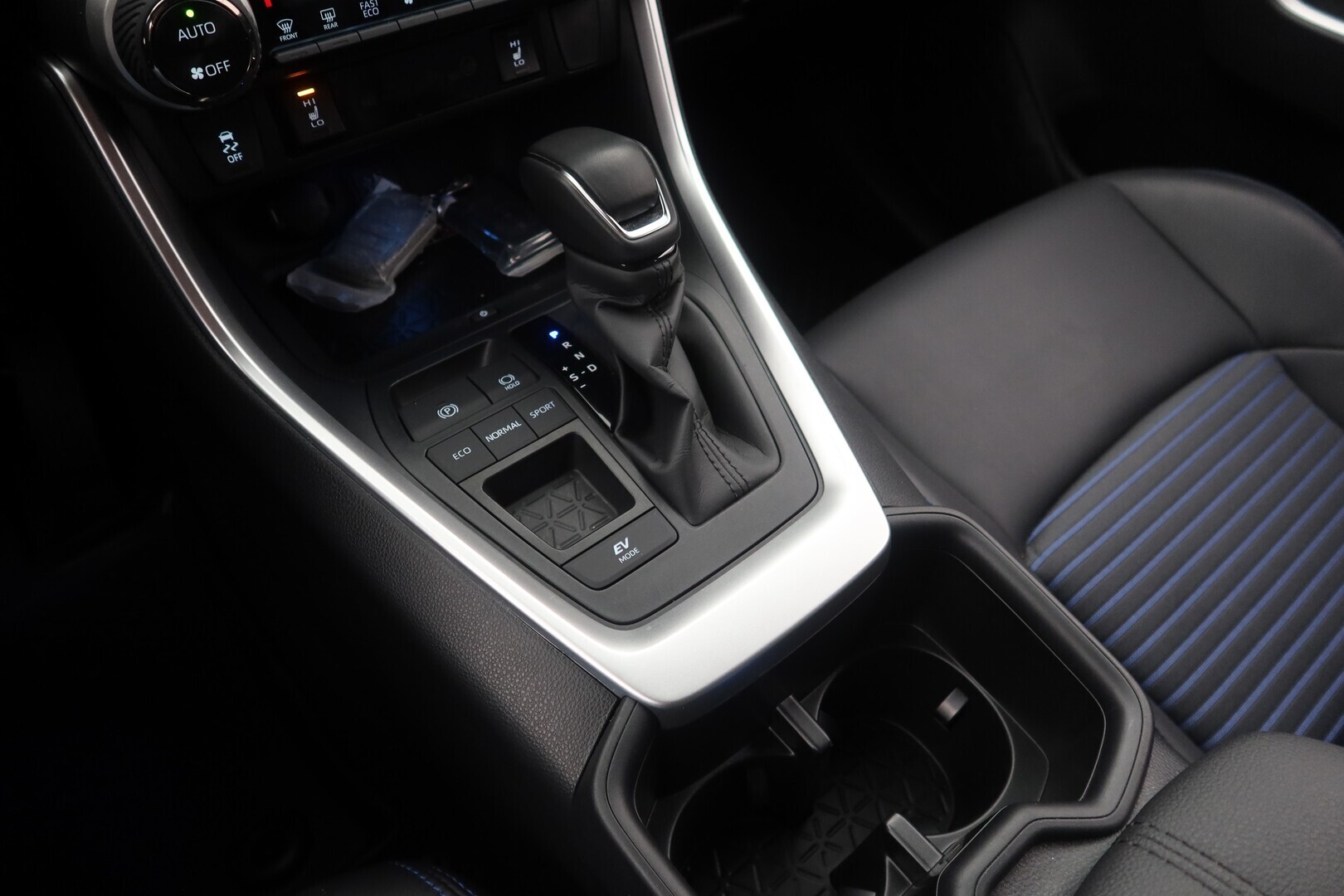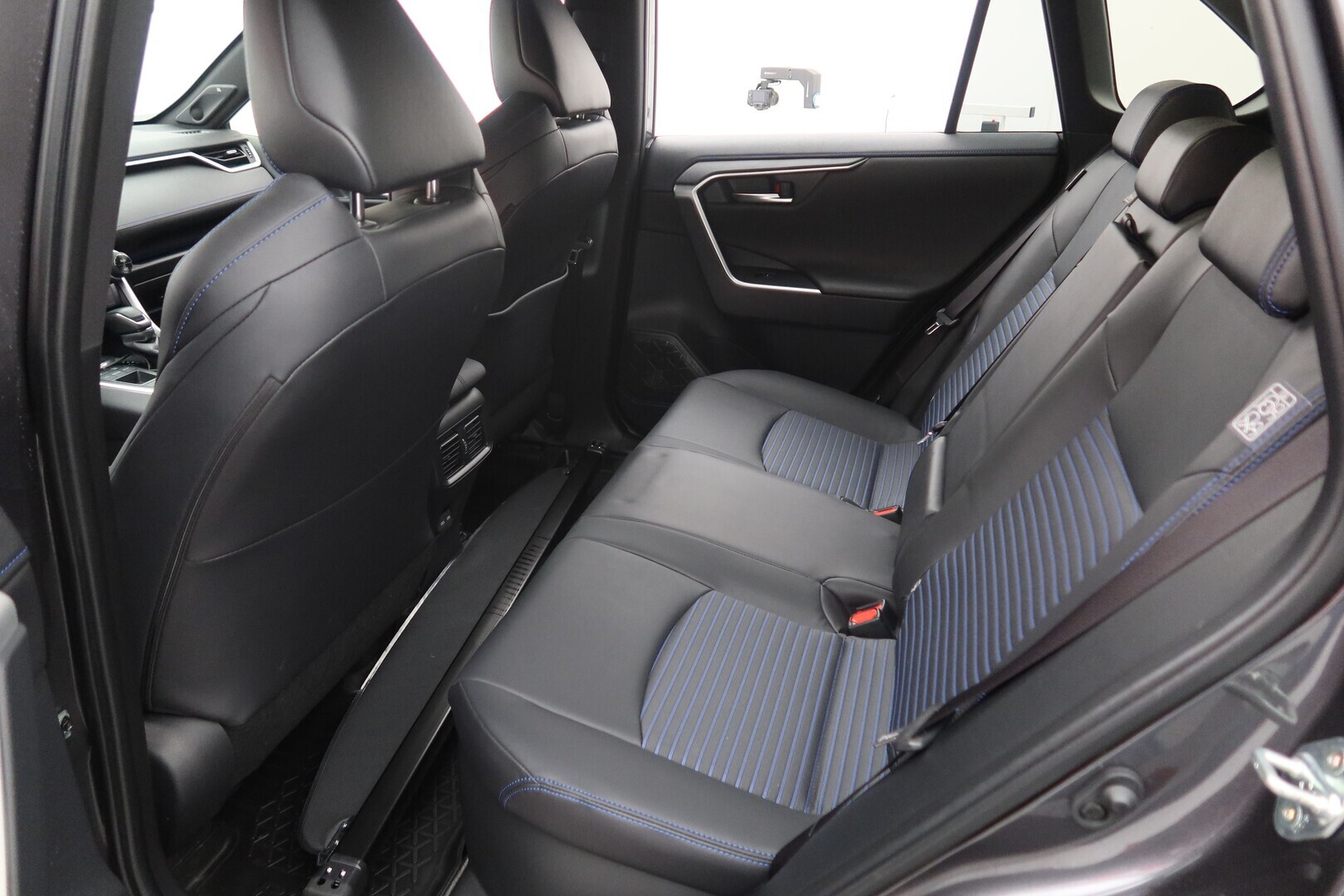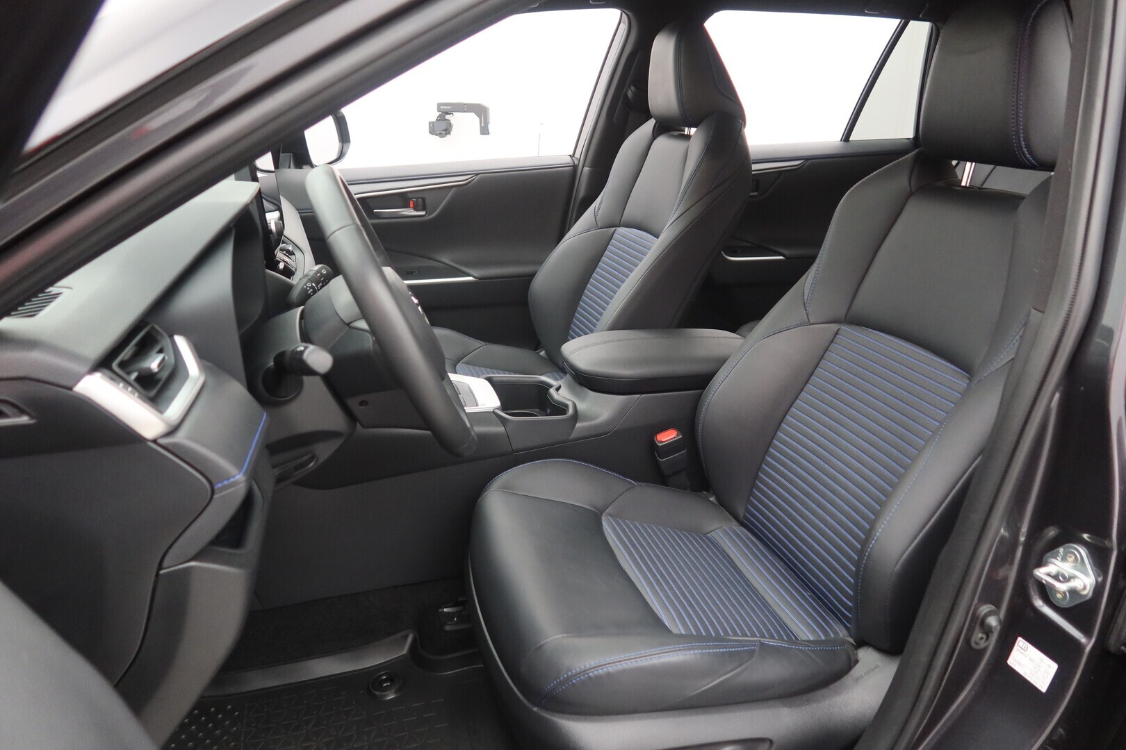 Synteettinen nahkaverhoilu sinisin koristeompelein