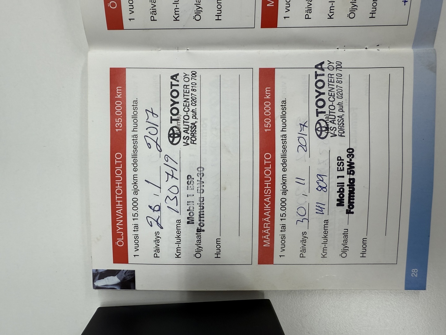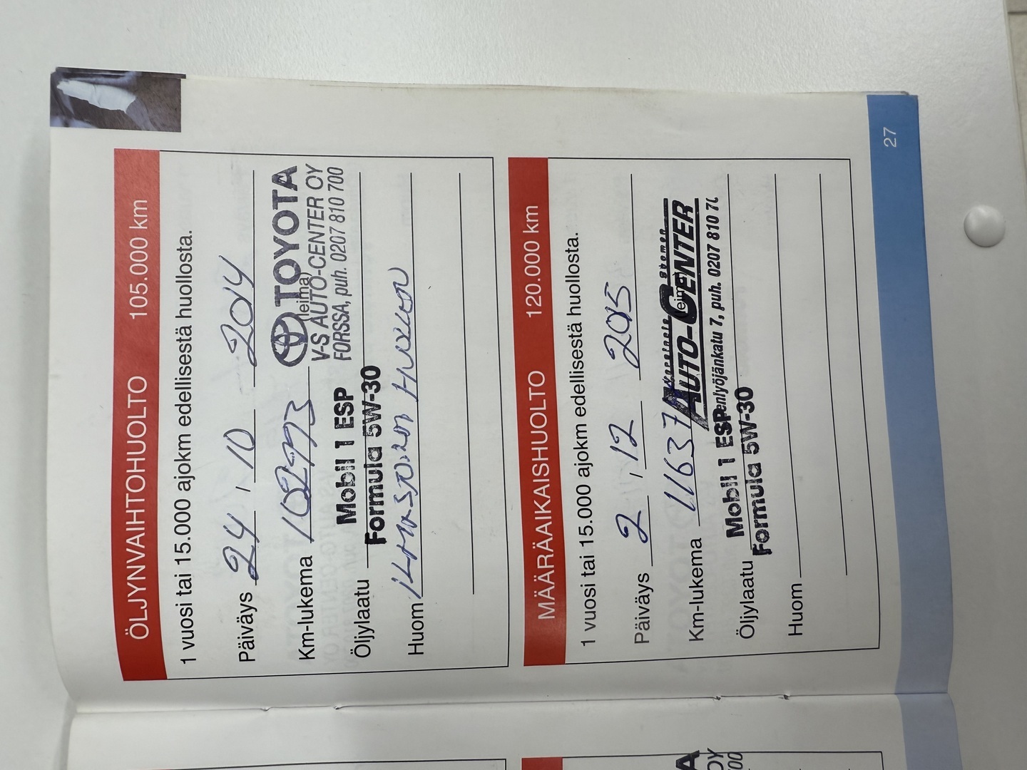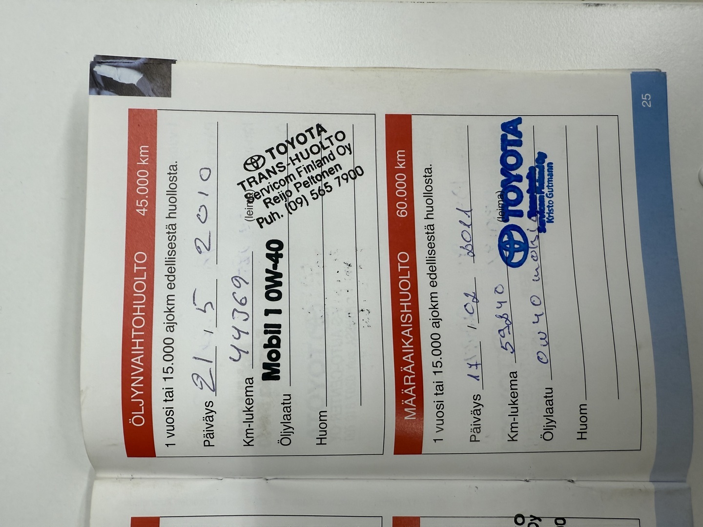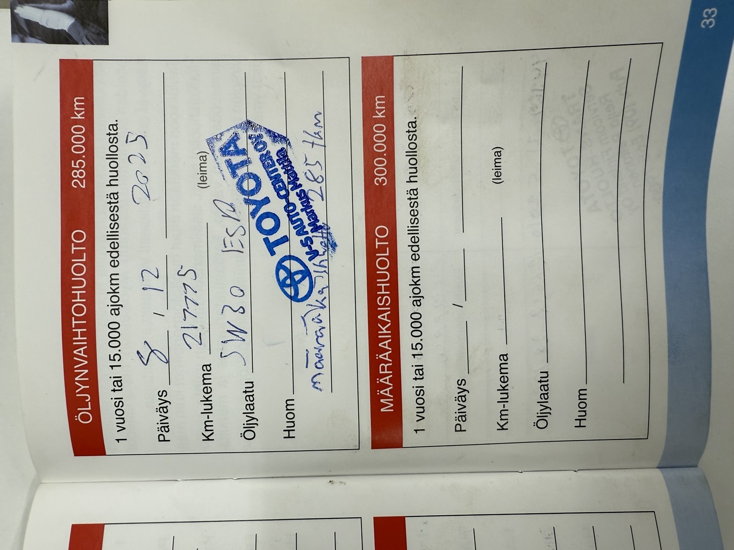 Täydellinen huoltokirja, juuri huollettu 217tkm/ 12-25 Toyota Auto Center Forssa Oy