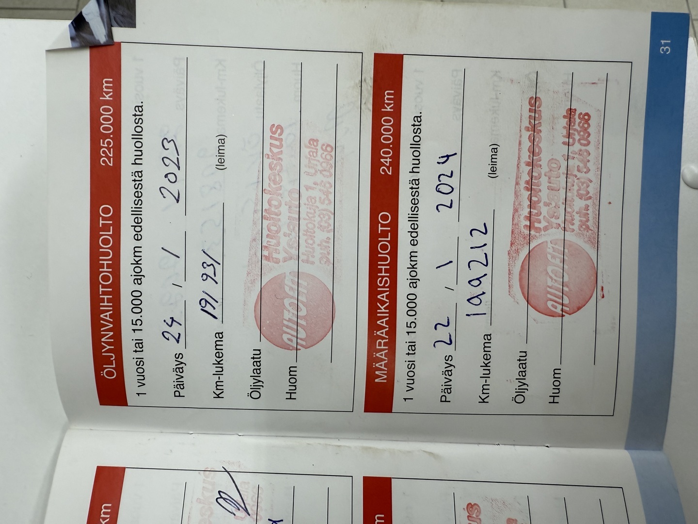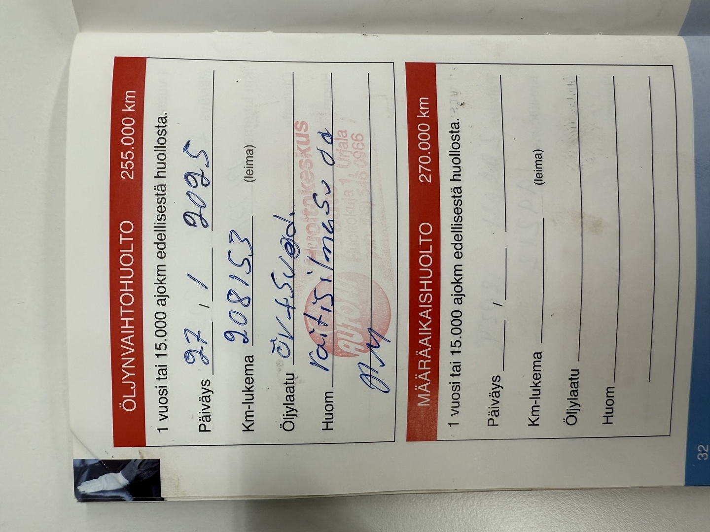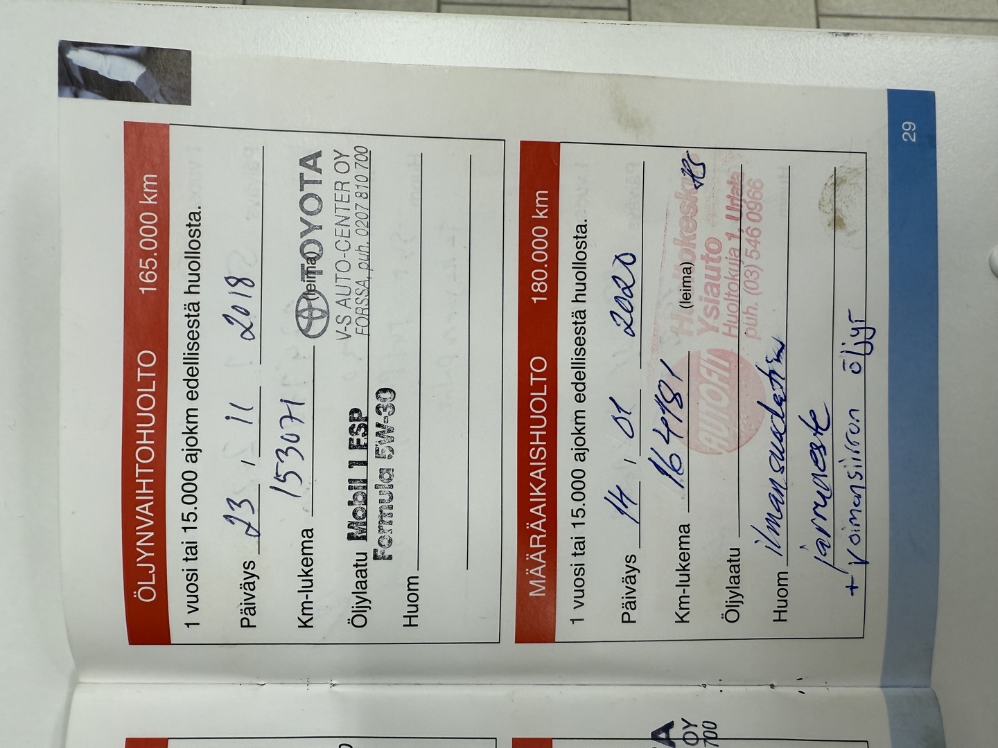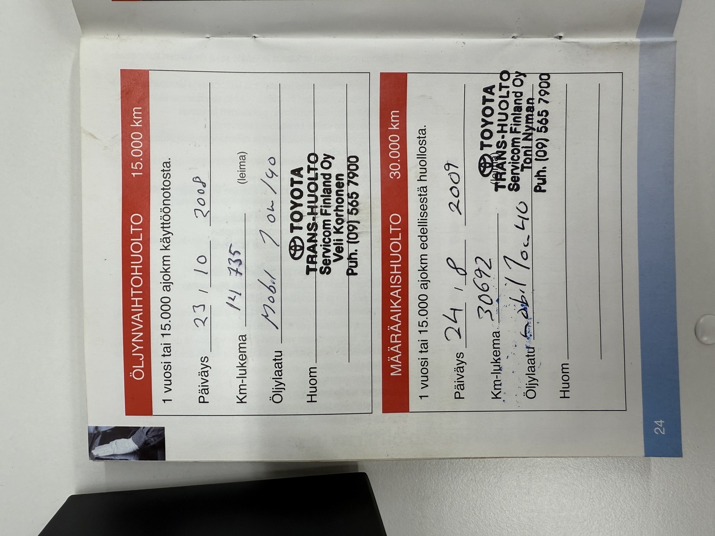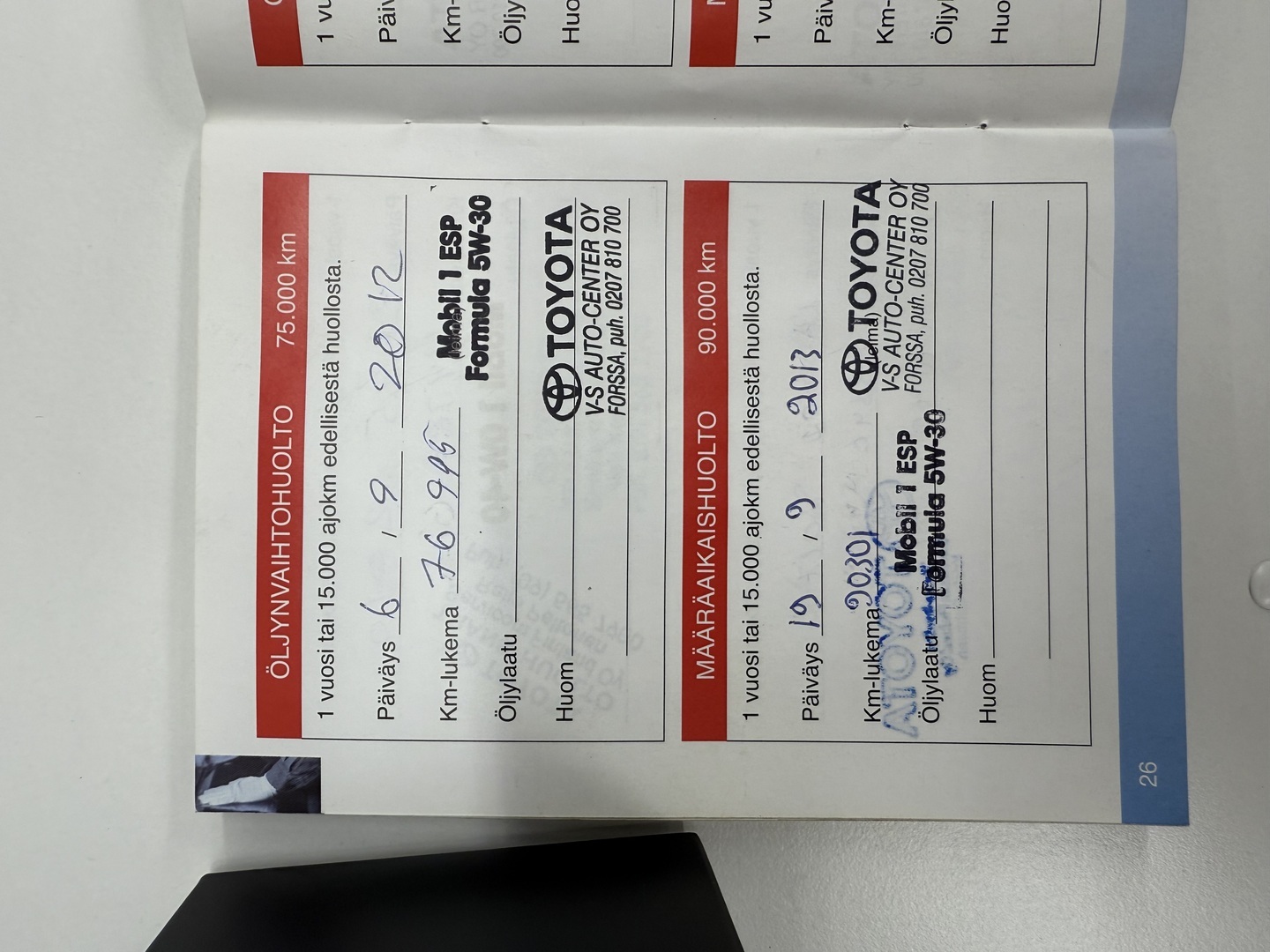 Täydellinen huoltokirja, juuri huollettu 217tkm/ 12-25 Toyota Auto Center Forssa Oy