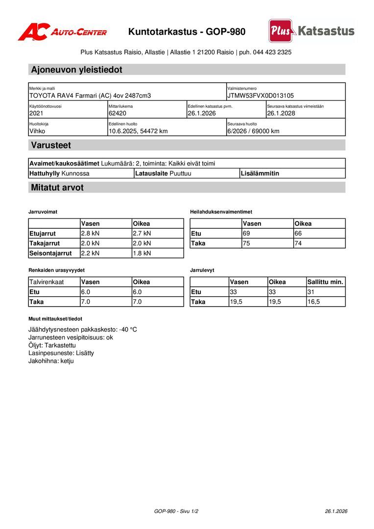 Täydellinen merkkiliikkeen huoltokirja, viimeisin huolto tehty 06/2025 54 TKM kohdalla.