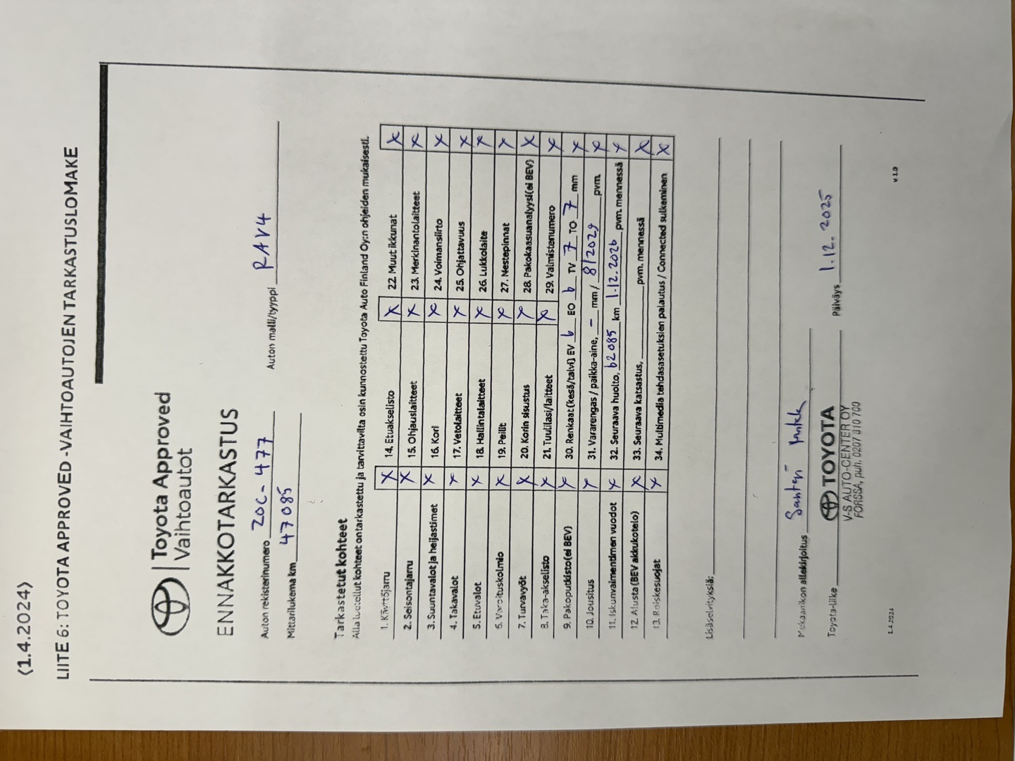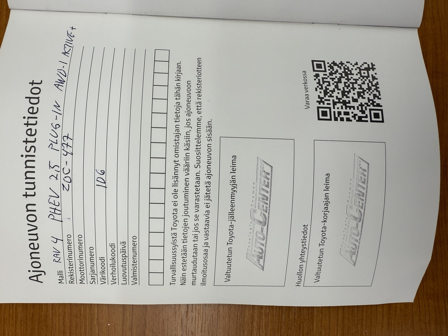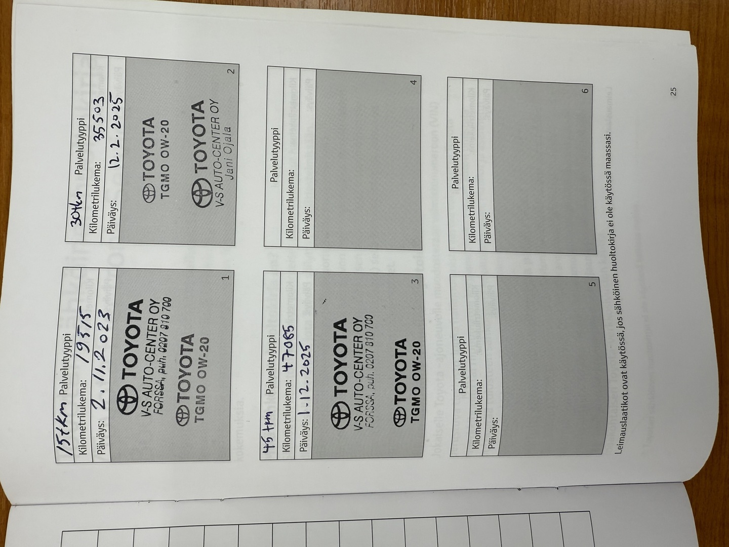 Täydellinen merkkiliikkeen huoltokirja, juuri huollettu 47tkm/ 12-25 Toyota Auto Center Forssa Oy