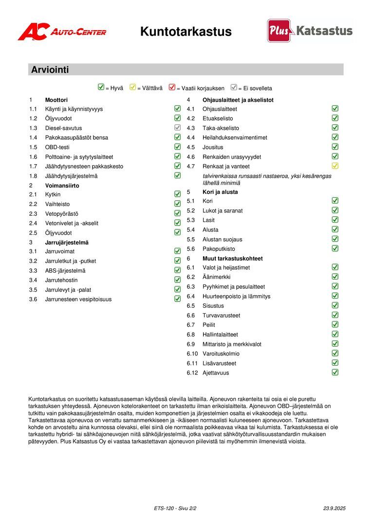 Täydellinen merkkiliikkeen huoltokirja, viimeisin huolto tehty 09/2025, 99989km kohdalla.