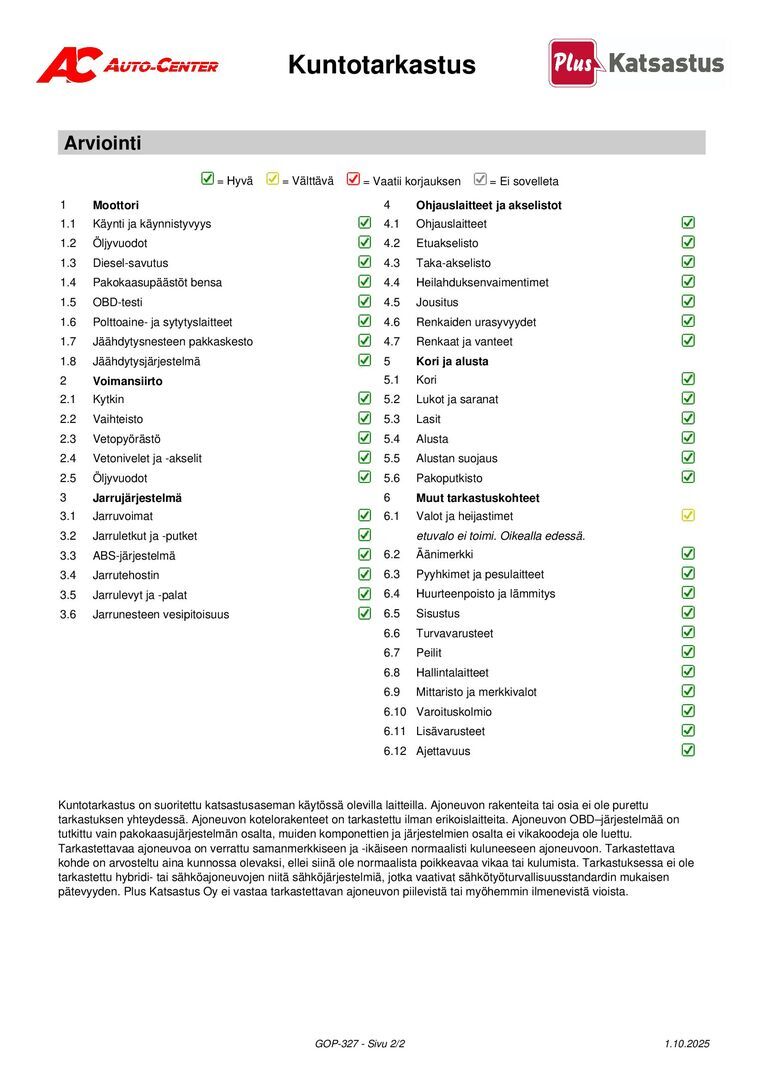 Täydellinen merkkiliikkeen huoltokirja, viimeisin huolto tehty 90 tkm / 2.5.2025