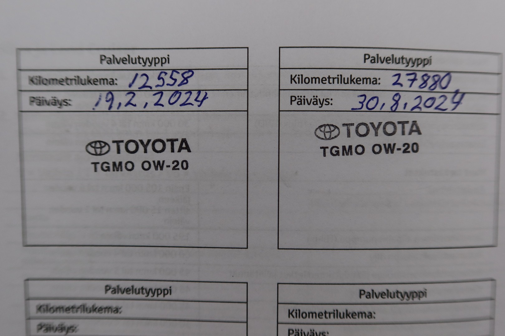 Huoltokirja, viimeisin huolto tehty n. 28tkm. ajettuna