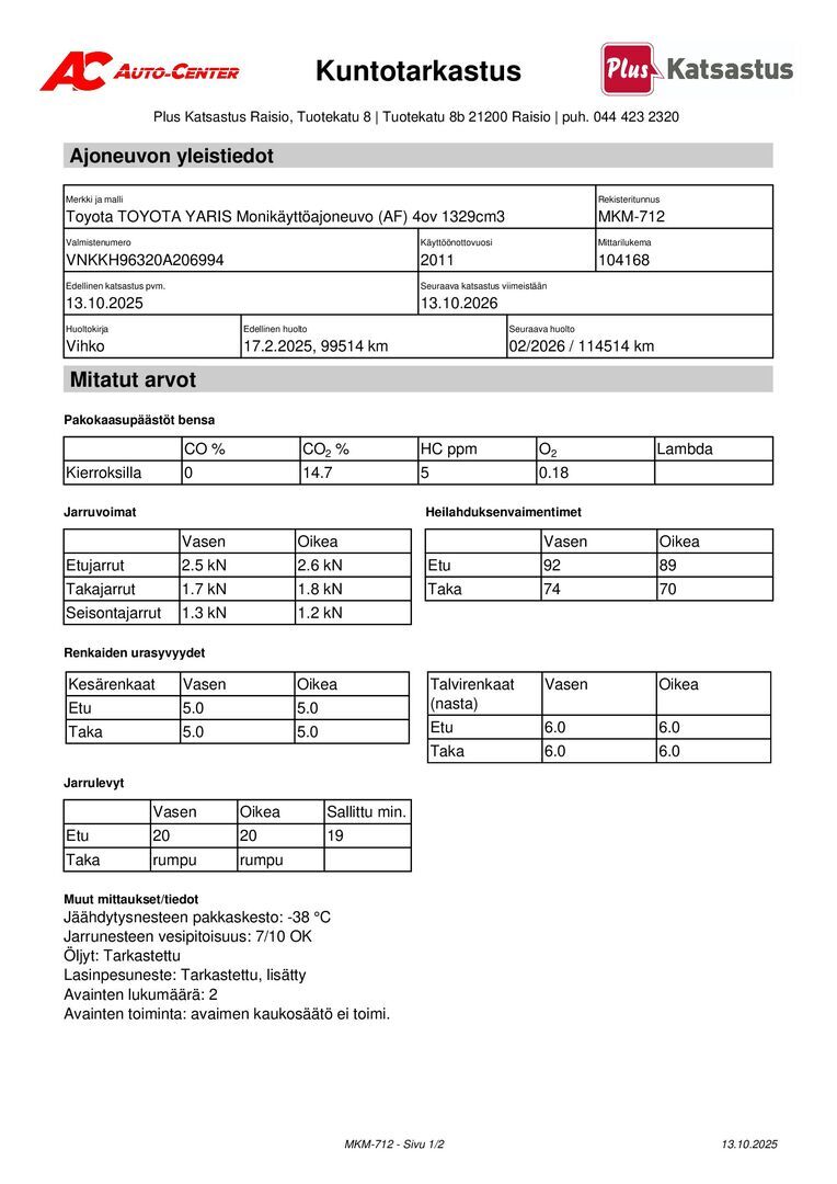 Täydellinen huoltokirja, viimeisin huolto tehty 2/2025/99514km kohdalla.