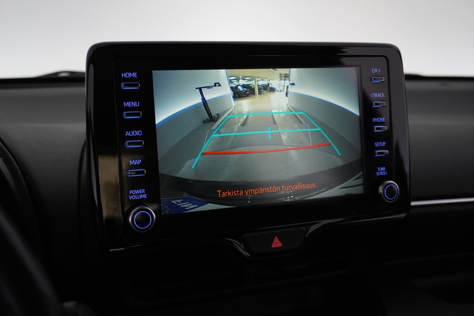 Peruutuskameran kuva mediakeskuksen näytöllä