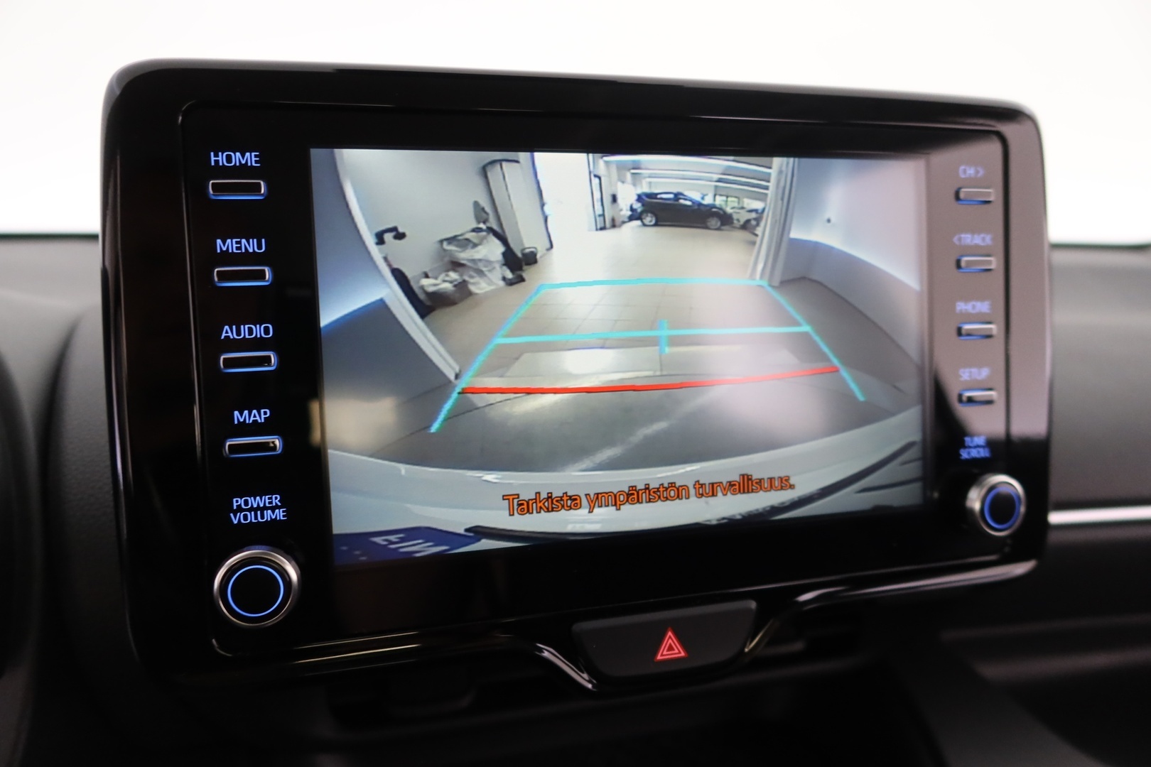 Peruutuskameran kuva mediakeskuksen näytöllä