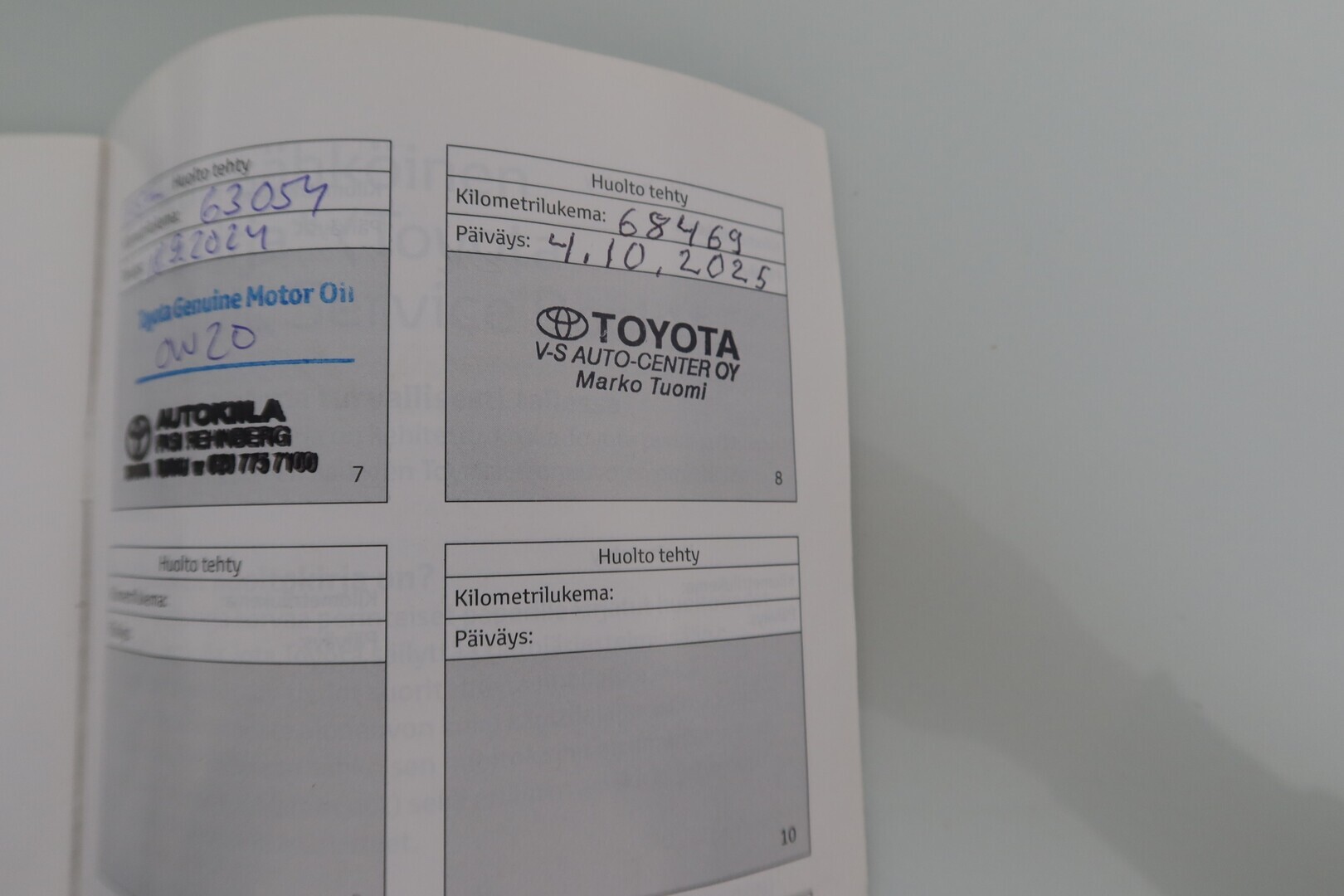 Huoltokirja, viimeisin huolto tehty 11/2025, 68469km kohdalla.
