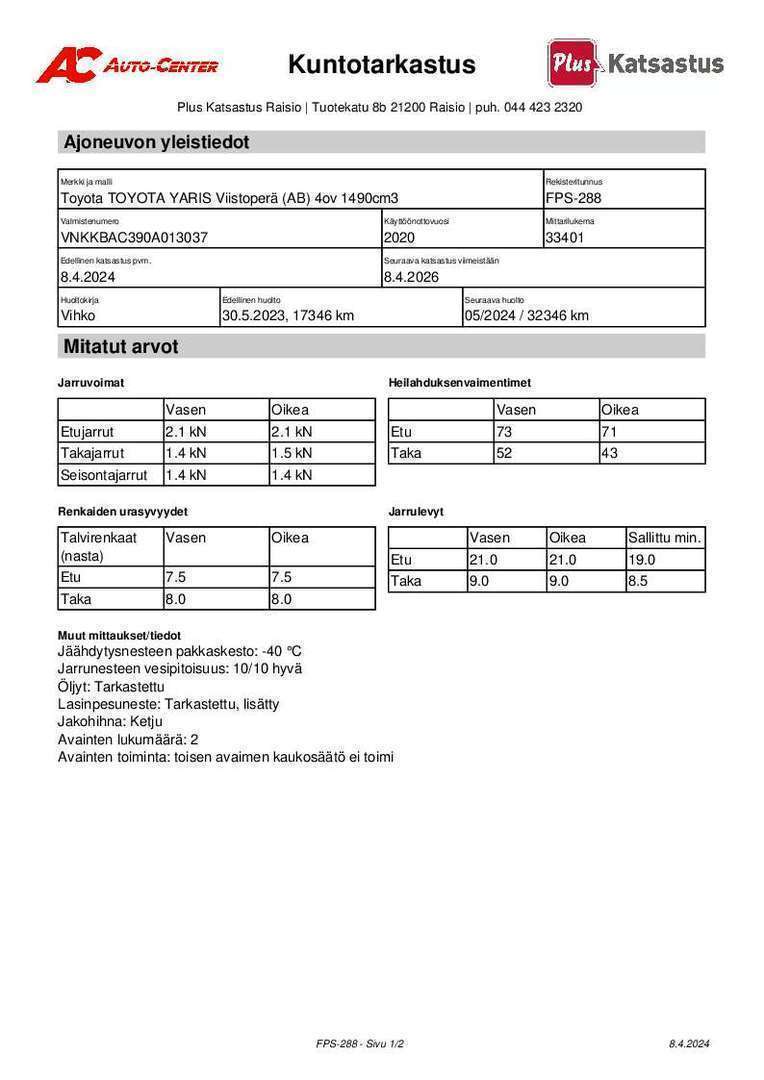 Täydellinen merkkiliikkeen huoltokirja, viimeisin huolto tehty 4/2025.
