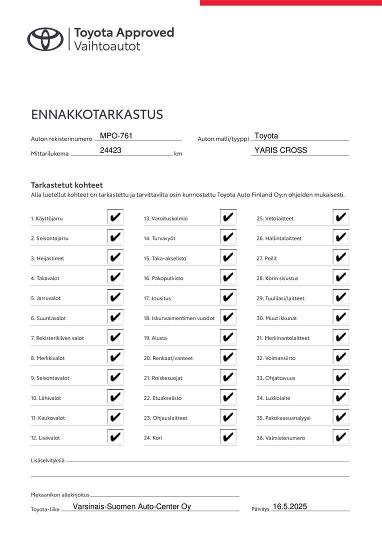 Täydellinen merkkiliikkeen huoltokirja, viimeisin huolto tehty 12/2024 16tkm