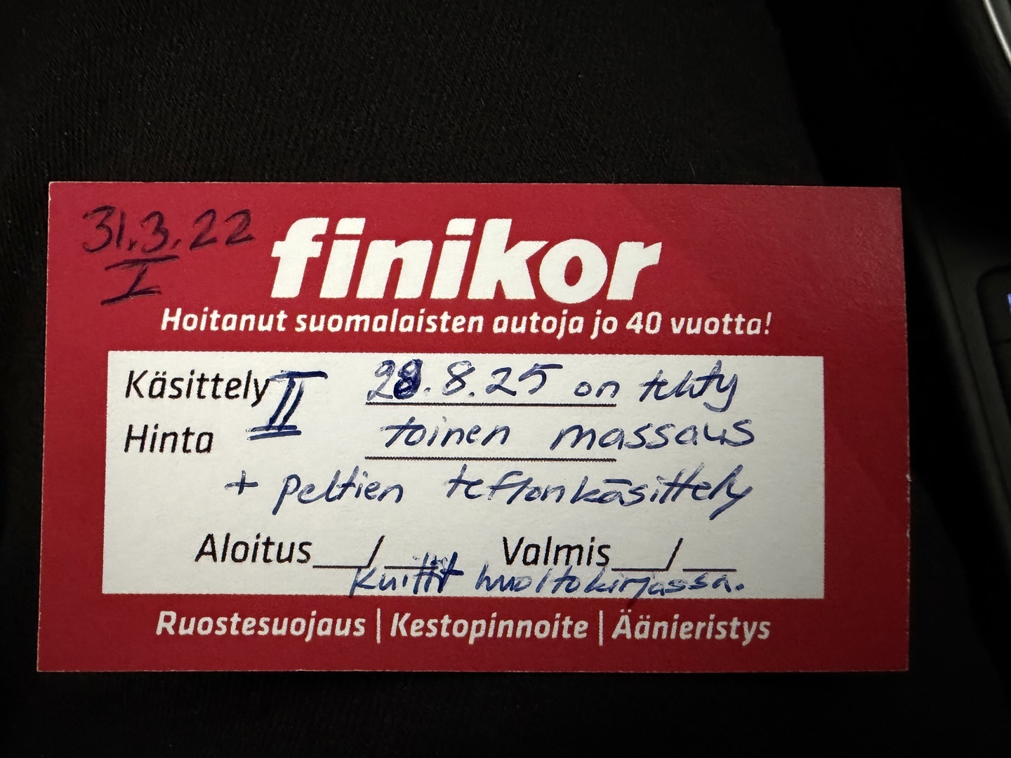 Täydellinen merkkiliikkeen huoltokirja, viimeisin huolto 9/2025, 57tkm