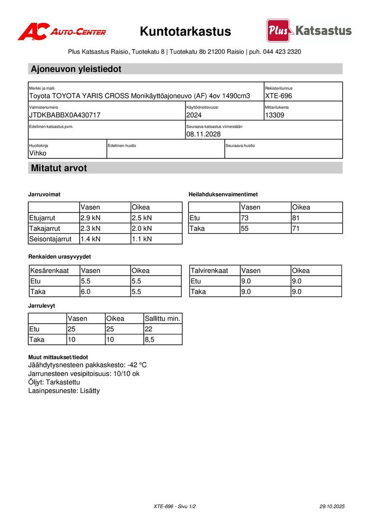 Täydellinen merkkiliikkeen huoltokirja, viimeisin huolto tehty 10/2025 13tkm